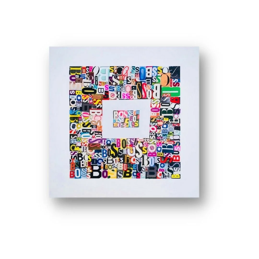 20”X20". Magazine clippings on stretched & primed canvas.